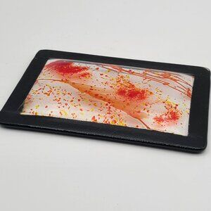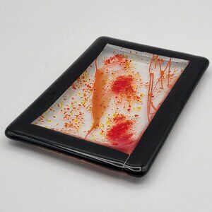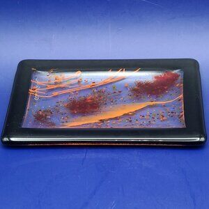 Gorgeous Hand Made Signed Art Glass Trinket Tray Red Orange Yellow Black 4 x 6