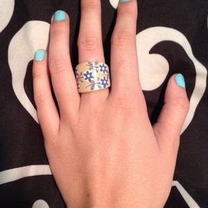 A cute accessory for any outfit. Painted with dainty periwinkle blue flowers and dragonflies