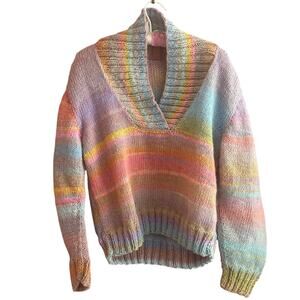 Gorgeous Handknit Pastel Rainbow Knit Sweater XS/S