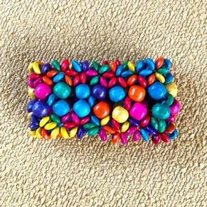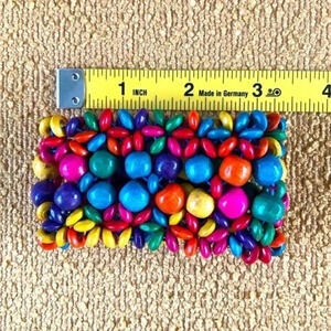 Gorgeous Handmade Multicolor Rainbow Wooden Bead Statement Bracelet NWT