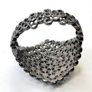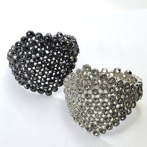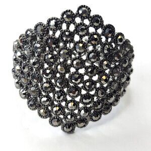 Gorgeous Hematite Rhinestone Wide Cuff Bracelet