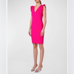 Gorgeous Hot Pink Sheath Dress W/V-Neckline and Short Puff Sleeves
