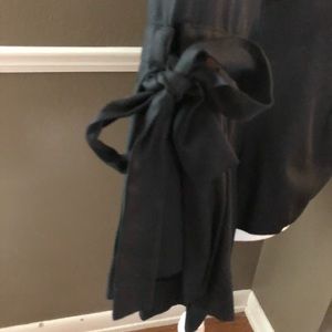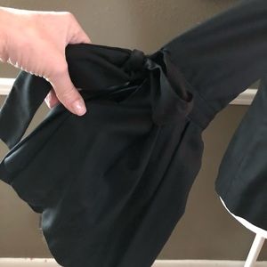 Bell sleeves with loose bow, accent this stylish jacket. Dress up or down, formal or casual. One button in the front for closure. Fully lined. I used this jacket to go over a formal during the fall. Looks great with jeans, a white T and heels!
