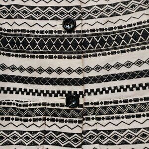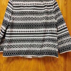 Gorgeous Kate Spade embroidered jacket in a size 4 or XS. It will also fit a size small. The jacket is 18 1/2" from pit to pit and 21" long and 3/4 length sleeves. It has a beautiful tribal design. It is made from 63% linen and 37% cotton and polyester lining and embroidery.