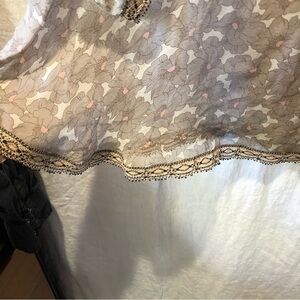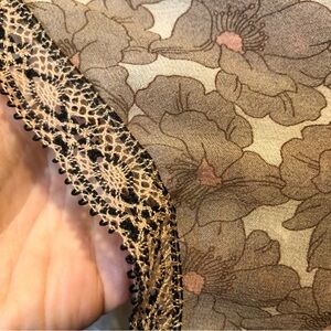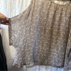 Gorgeous Kristine Ti 100% Silk overlay blouse taupe and pink subtype floral XL