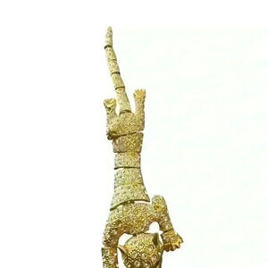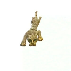 Gorgeous LRG Tiger emerald color eyes pave. clear rhinestones Shoulder Brooch..