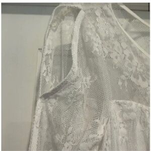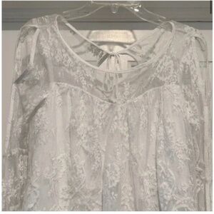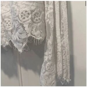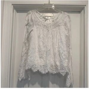Gorgeous lace blouse by Abercrombie and Fitch. Cold shoulder accent. Scallop bottom edge. Tie back. Feminine and flowing! Size extra small.