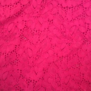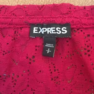 This gorgeous lace top from Express is a beautiful rich burgundy color. The color swatch is a better representation of the true color.