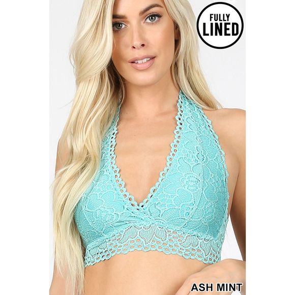 STRETCH LACE HALTER BRALETTE WITH LINING