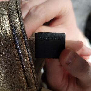 Up for sale is this beautiful Lanvin bag. It is metallic leather and gold with an adjustable crossbody shoulder strap, extended sides, and polished gold trim. Bag opens to a bronze fabric interior with its own patch pocket. 12.5 x 5.5 x 3.5. Drop is 19.5.