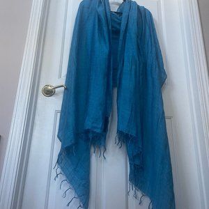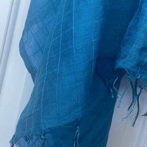 Luxury Bali designer Paul Ropp- 100% silk sarong scarf shawl. Stunning rich cerulean blue color and luxe 100% hand cut silk feels like holding a tropical sea in your hands. Subtle windowpane pattern is another elegant touch. Fringe at ends. Large 98" x 43" makes this a very versatile wrap. Excellent pre-loved condition; no sign of wear. See pics!