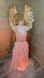 Ruffled chiffon hi-low dress accented with metallic polka dots and a hand-embellished jeweled belt.