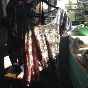 @tx1977 Hi again! ☺️ It's a tad sheer in spots but not see through - I will take pictures with different things underneath it tomorrow so you can get a better idea. I'll measure & send fabric too. It has a little stretch & really great colors as well as shape to it. If it's ok, I'll get things to you tomorrow?! Thank you!!