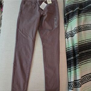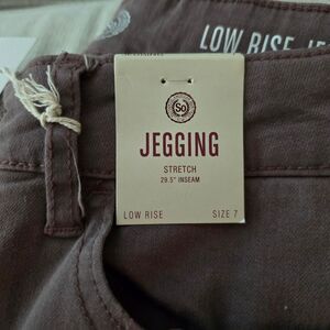 These skinny jeans from SO offer a sleek and contemporary look, crafted from smooth denim for a comfortable fit. They're a beautiful shade of mauve/dusty rose. With their modern, clean-cut style, they are the perfect back to school look! Measurements shown.