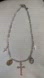 Another masterpiece! Beautiful religious charm necklace made with stainless steel on a paper clip chain! All the rage! You have 5 charms! 18 inches long. Toggle clasp. Perfect to wear with anything!
