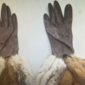 Vintage 4 inch long 12 inches wide 6 inch tall mink fur purse and pair of gloves with leather and mink