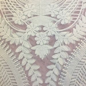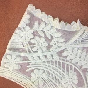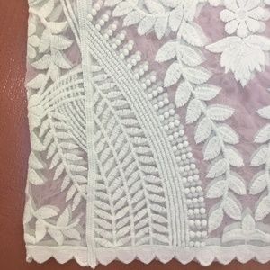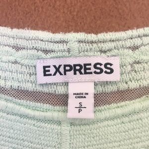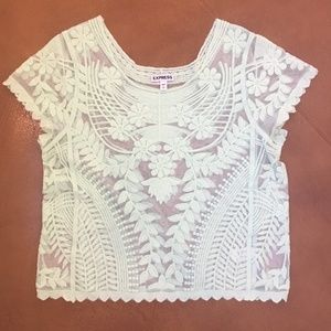 Express Mint Green Seafoam Lace Top This gorgeous lace top has small cap sleeves, scoop neck and somewhat cropped length. It has beautiful detailed floral lace pattern throughout! The quality of this top is wonderful and it is so pretty. Pair it with a nice skirt for a dressed up look or throw on with cute shorts! EXCELLENT Condition