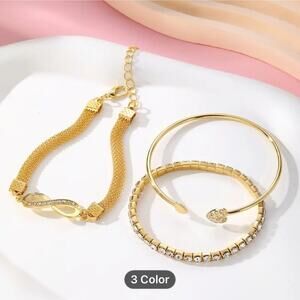 PRODUCT.3 Pcs Vintage Elegant Rhinestone Bracelet Set - Adjustable Heart & Infinity Symbol Bangle, Stylish Alloy Open Cuff for Daily Wear & Gift Occasions