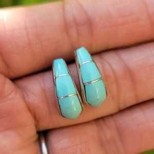 Gorgeous Native American handmade baby blue turquoise inlay 925 sterling silver earrings