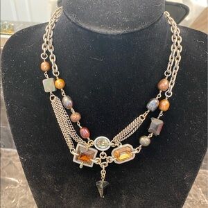 This is such a unique piece of jewelry. Multi colored glass stones on silver metal.