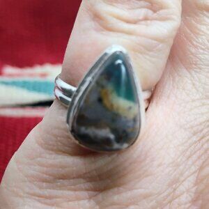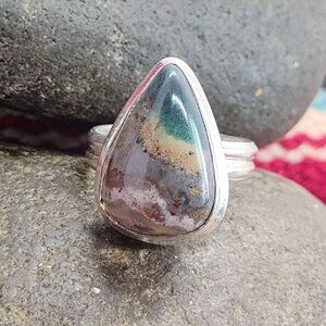 Gorgeous Ocean Jasper Agate Sterling Silver 925 Teardrop Shaped Ring Size 6