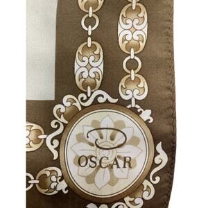 Gorgeous Oscar de la Renta Beige And Brown Square Silk Scarf