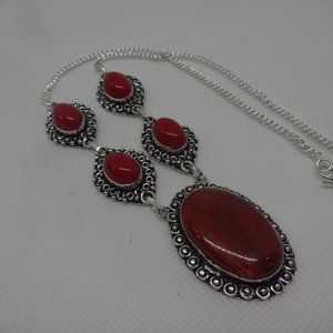 Gorgeous "POPPY JASPER & RED CORAL" Handmade Sterling Necklace 20" #732
