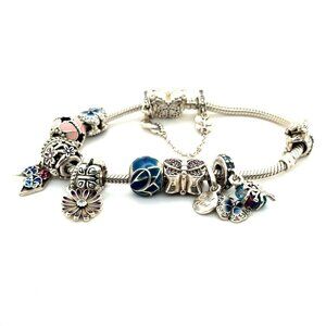 This is a butterfly/flowers theme charm Pandora bracelet.