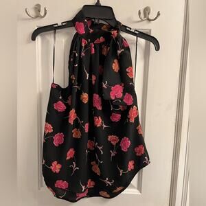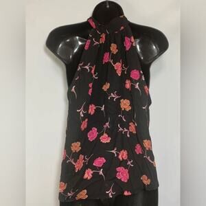 Gorgeous Paper Crane Halter Neck are Upscale Blouse Floral Print Top Sz M