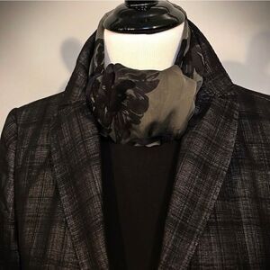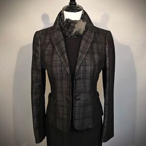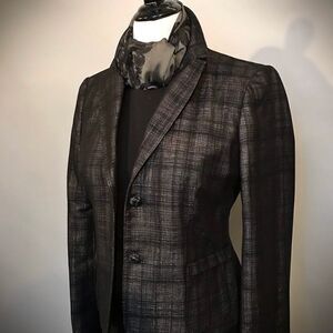 Classic and timeless this beautiful Italian Jacket has a subtle silver grey thread running through a black weave. Very elegant.