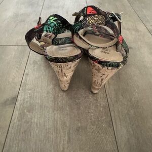 Gorgeous Pineapple Fruits Wedge Cork Strappy Open Toe Black Sandals Heels Women’s size 9