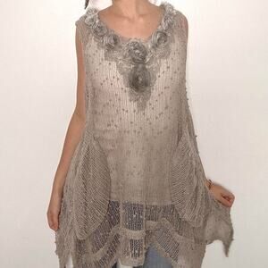 gorgeous gray gauzey material poncho style top! the brand is pretty angel. sooo stunning has gorgeous flower details and slouchy boho pockets! perfect for layering! size small ptp- 21-29”