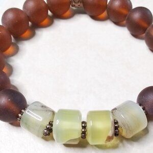 Gorgeous Primal Rustic ~ Recycled Brown Glass Beads + Pale Green Agates ~ Pick 1