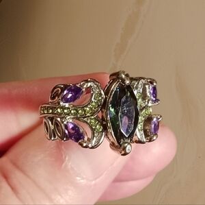Gorgeous Purple & Green Stone Ring Ladies size 5 1/2 Silver Toned AB MARQUIS