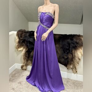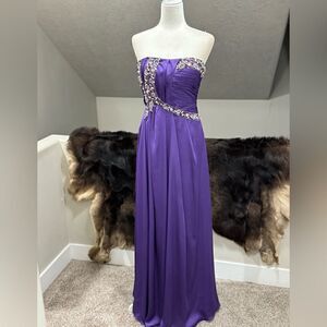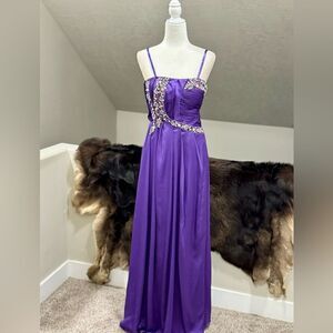 Gorgeous Purple Satin Beads & Sequins Gown/Evening Dress