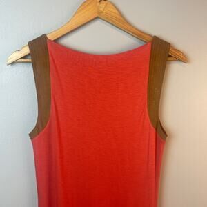 Very Nice Dress that transitions through multiple seasons. Double lined. Sleeveless Suede Trimming. Notice the last picture, it looks as if the suede trimming was scrubbed slightly- Really not very noticeable.