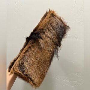 One of a kind! Very unique leather satchel bag. Handmade from real hair on goat hide leather. Use in multiple ways, includes 1 chain & 1 leather strap for matching different outfits.