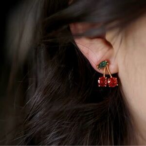 These delightful earrings feature a playful cherry design with vibrant red cherry shapes and elegant gold-toned stems. The polished finish adds a touch of sophistication, making them a perfect accessory for any occasion.