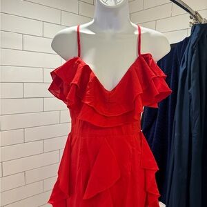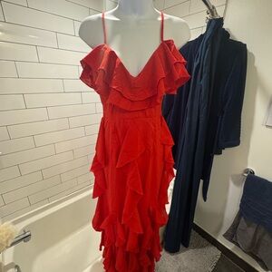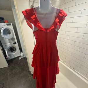 Turn heads with this stunning red ruffled dress. Perfect for any occasion, its vibrant color and elegant design make it a must-have in your wardrobe.❤️🔥