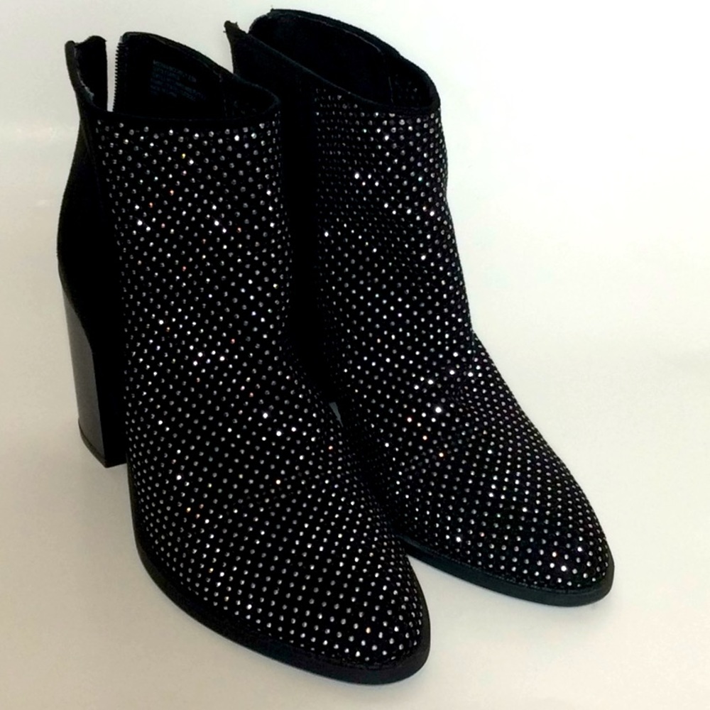 Gorgeous Rhinestone Booties. Suede. Block heel. Cushioned footbed. Back zipper closure. Size 9.5. Never worn.