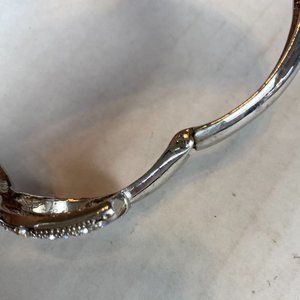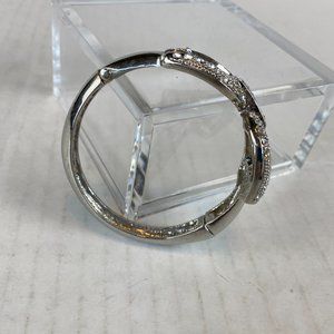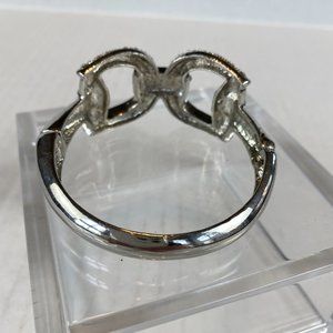 Gorgeous Rhinestone Encrusted Silver Hinged Stirrup Style Bracelet Bangle New
