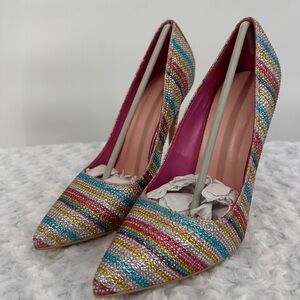 Gorgeous Rhinestone Rainbow Barbiecore Shoes! These stunners are NWOT and ready for their night out on the town with you! So glittery and light catching! You will tower in these 5 inch heels! Size 7