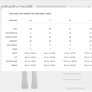 @marie777333 Greeting, size 38 in Italian size is XS/ US2. The chart is from Roberto Cavalli website ( photo of a measurement just uploaded). I hope this is helpful. ๐