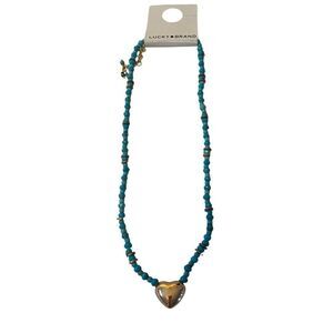 Gorgeous Rough Cut Turquoise Beaded Goldtone Heart Choker.
