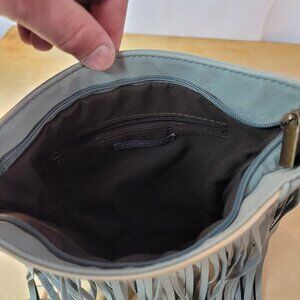 Beautiful light blue and silver styling with fringe is exactly what you need for a daily carry that easily moves to nights and weekends out.