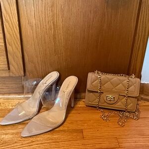 Perfect slinky wine/purple maxi dress with matching velvet maxi coat. In great condition. Worn once to a fall wedding. Dress is Alter’d State, size Medium. Velvet coat is Standards and Practices, Size Small. The shoes and bag are shown to complete the outfit but are not for sale.