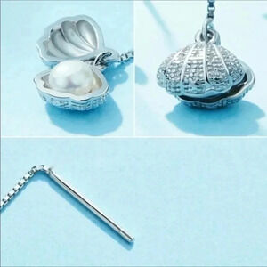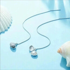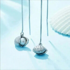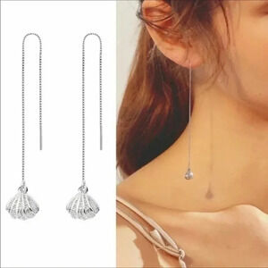 Gorgeous Silver Seashell Pearl Threader Earrings NWT