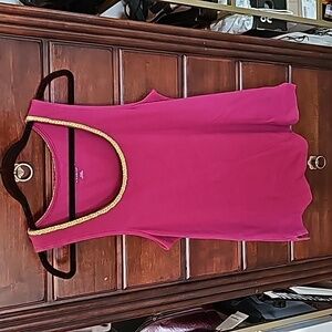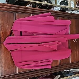 Beautiful timeless set. The purple/dark pink will look beautiful on all skin types. Pretty gold detail at neckline. Flattering wrap design. Versatile. Just stunning!