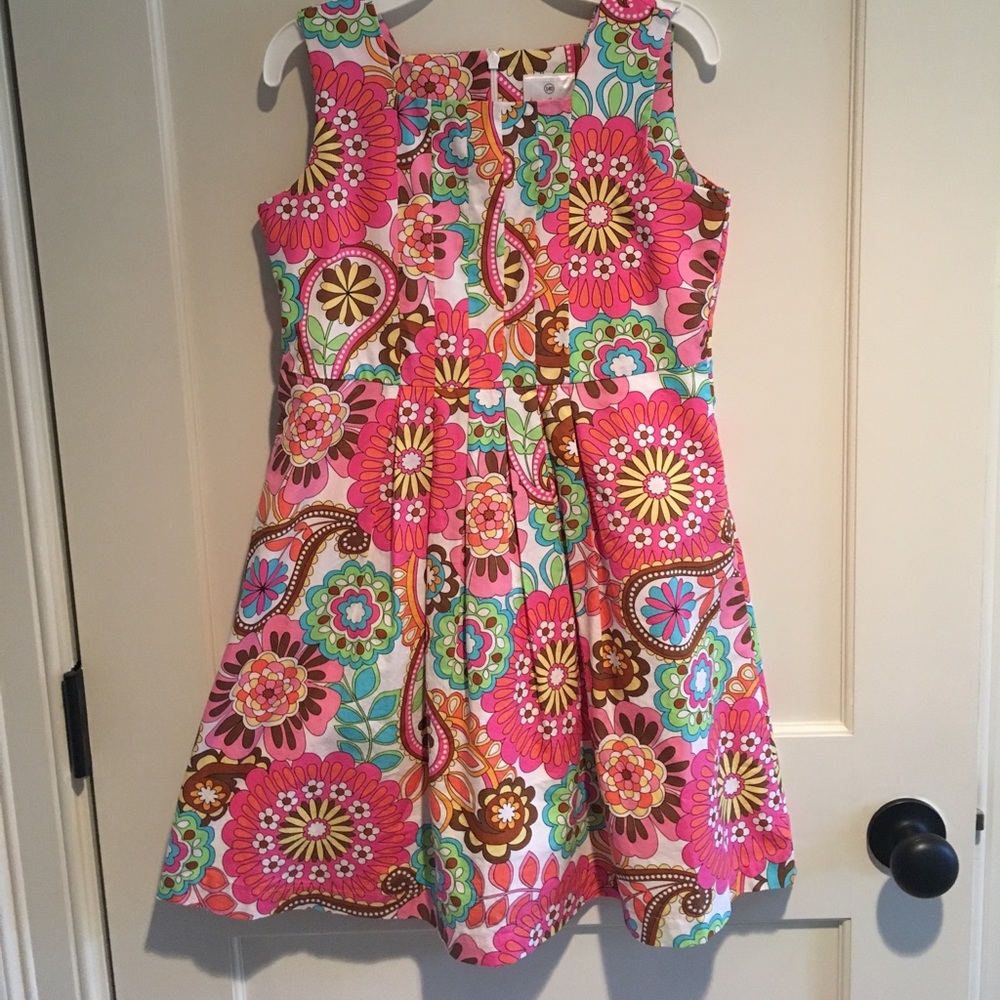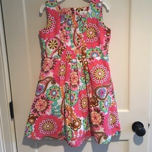 Beautiful preppy floral print. Worn once to a wedding. Perfect condition! Cotton and machine washable too. Great Hanna Anderson quality! Size 140 (10).