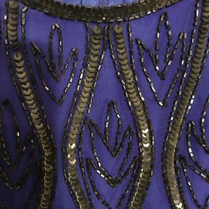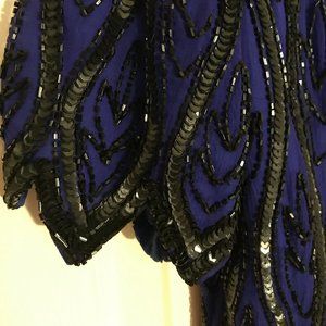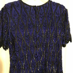 Gorgeous blue beaded short sleeve top with zipper in the back. 100% silk. Used/preowned